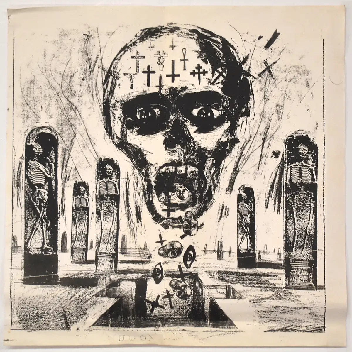 These working sketches were sent to the band during the album’s design process and retained by Tom Araya, offering a rare look at the creative exchange behind one of Slayer’s most enduring visual statements. This rare iteration of the Seasons in the Abyss art design remains secured in the archive.